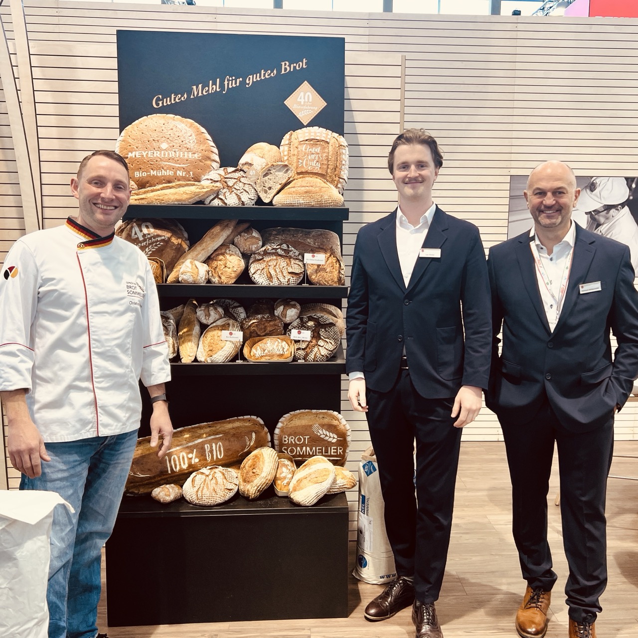 Am Stand der Meyermühle ging es um Produktdifferenzierung über klassische Stellgrößen. Christoph Heger, Vizeweltmeister 2025 der Brot Sommeliers, beschrieb Mehle, bei denen der Kunde über Granulation und spezielle Mischungen mitentscheiden kann. „Wir haben uns überlegt Mehle anzubieten, bei denen der Kunde die Granulation und spezielle Mischung wählt. Abgestimmt auf den einzelnen Kunden werden die Mehle gemischt.“ Heger nannte Pizzamehle, Spätzlemehl und Nudelmehl als typische Felder um spezielle Maschinengängigkeiten, Biss- oder Kaueigenschaften zu erreichen. Leo Distler, Leiter Getreideeinkauf der Meyermühle, brachte die Messefunktion in einem Satz auf den Punkt: „Auf der BIOFACH möchte ich mein Netzwerk pflegen sowie Gespräche über die aktuelle Marktsituation führen.“