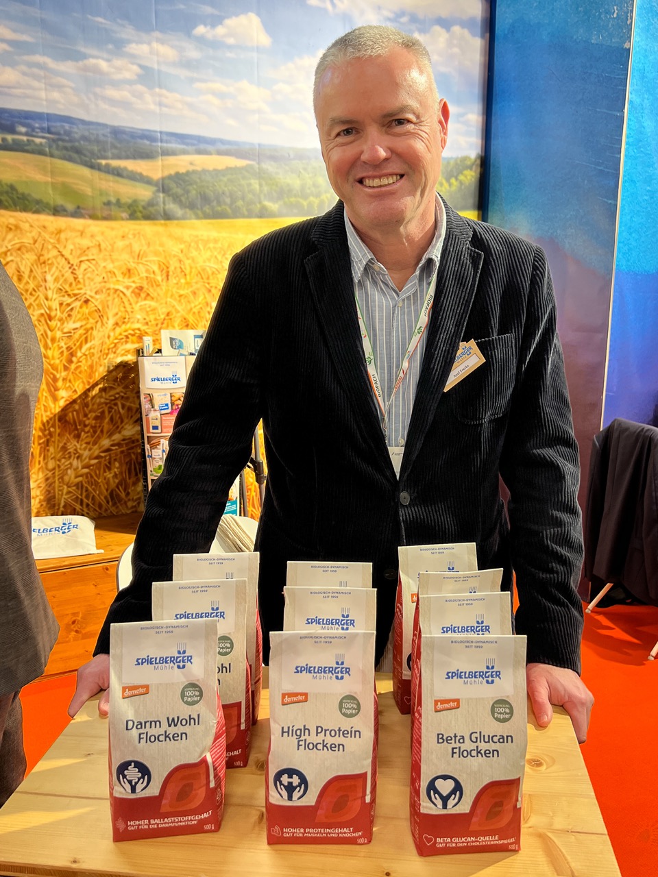 Die Spielberger Mühle präsentierte verfeinerte Haferflocken, die gesundheitliche Aspekte berücksichtigen. Bei den High Protein Haferflocken setzt Spielberger auf eine Flockenmischung, die zusätzliche Proteinprozentpunkte erreichen soll, ohne Zusätze. Ein zweites Produkt adressiert Beta Glucan mit dem Ziel, das Cholesterin zu senken. Heidenreich ordnete das pragmatisch ein. High Protein spreche eher junge Zielgruppen an, Beta Glucan eher ältere, bei denen Cholesterinwerte häufiger zum Thema werden. Zusätzlich verwies sie auf eine Mischung zur Darmgesundheit, die Spielberger mit Roggenflocken ergänzte, weil Haferflocken an sich für die Darmgesundheit stehen und man die Darmflora gezielt unterstützen wolle.